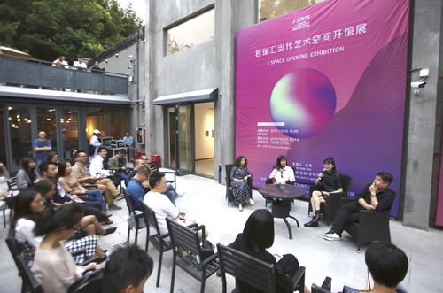 君瑞汇是深圳新进的当代艺术机构,我们通过它也看到了君胜集团对促进文化和艺术发展的某种雄心,我们觉得这是一个特别好的事情。跟随着深圳文化艺术建设的种种现象和步伐,我们期待君瑞汇可以在未来将更多的好作品和好展览呈现给大家,请大家多多关注这个深圳文化艺术的新聚集点。上午我和媒体朋友们导览时,说如果有一些有意思的问题,可以留着下午的时候在君瑞汇对艺术家们提出。所以接下来,是我们今天开幕日的最后一个环节,我们邀请了在B展场有作品展出的三位参展艺术家,在这里做一个简单的谈话,分享她们的创作及与展览主题相关的话题。让我来给大家介绍一下,在我旁边的这位是张心一,来自北京,她现在是央美徐冰的在读博士,她的作品出现在我们这次展览的三个折页设计中,也被设计成其中一个地铁宣传广告。她旁边的这位是林山,也是一位很年轻的艺术家,同时也是一个“深二代”,在国美毕业后去了意大利学习,现在回到了深圳。然后是薛扬,她在关山月美术馆工作,非常有经验,在深圳做了很多的创作和展览。正好她们三人有某种一致性又有某种不一样,所以我们请到她们来一起谈话。接下来,请薛扬开始分享。