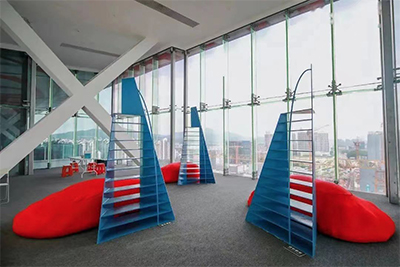 After this project, we continued our cooperation on another exhibition, Uselessness as Usage – Operation Delta #4: Architects in Action. Considering the exhibition’s exploration of the relationships between man and space, cities and the environment, during the pandemic at the time, we discussed online with two invited architects, respectively from Japan and Europe, for the ultimate form of the exhibition – a maze built in Time Museum’s oblong exhibition hall. The maze was realized by using a very rough kind of hollow bricks to divide the oblong space into triangular cells of different sizes, in order to give visitors a certain sense of loss which made the space acceptably oppressive. And, outside the maze, we felt that the visitors, after experiencing the semi-enclosed environment, would need to escape in some way, like going up or climbing higher for, perhaps, a final jump to release the suppressed part of their emotion. So, we also designed a structure called Delta, made a few and placed them in the glass-box exhibition space of the museum. Delta is actually a letter in the Greek alphabet, and represented by a triangle (Δ) in geometry.