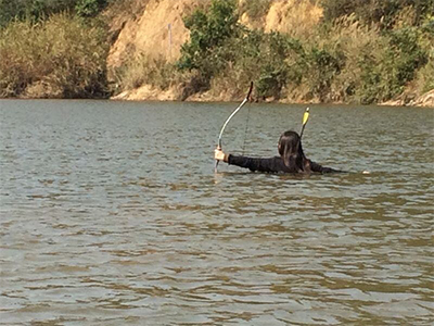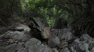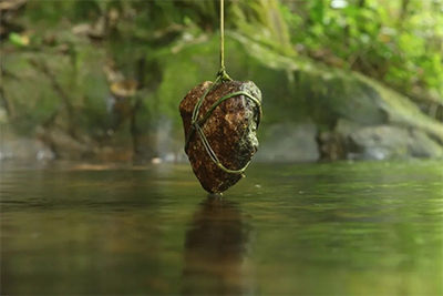 As the initiator of Nature Art Exploration Program, I invited four artists, who and I have all lived in Shenzhen for over 20 years. Our approach to work has three most important characteristics. First of all, we don’t plan beforehand: before stepping into nature, we don’t predict what we are going to do today or what we can accomplish. Second, our communication with the invited artists won’t cover anything definite about each other’s creation, but, like the roots of a plant that grow separately, we have no idea of what each other is doing or what each other can accomplish. The last one is a point I’d personally like to stress: we don’t do sociological research. Two pieces of mine were implemented in Wutong Mountain, Shenzhen. In one of them, I collect a random stone from the water, hang it on a bough with a rattan I’ve found nearby, sit quietly by its side and aim my camera at it. The wind keeps the stone moving a bit into and off the water. Another piece was inspired by some of my kid’s very natural movements when I took him there. I recorded them and also invited some kids we had met in the mountain to beat the water. The tempo at which they beat it was also the tempo they wanted to express in that environment. What intrigued me are mainly two aspects: a) in a similar natural environment, the different body functions and emotional reactions of different people, and how they convey these reactions outwards; b) some short and subtle interference of the human body and action in time, space and the form of an object.