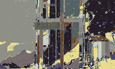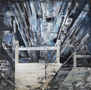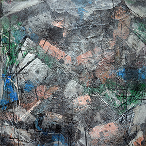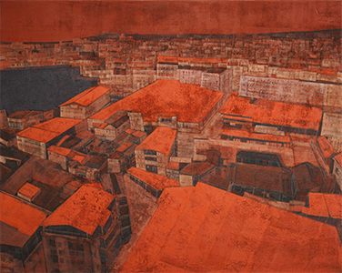 His creation is a process of finding a balance for the expression of urban spirit, so he alternates between the microscopic world and the macroscopic one, thinking about how to rebuild the image, narrative, impression and history of a city and exploring the ways their relations change in this new age. The texture of his work is formed by chance by overlapping different color masses and mingling oily and water-based materials. Urban marks are revealed by the process of scaling off, refreshing and gluing. Every printing means a new image of the city.